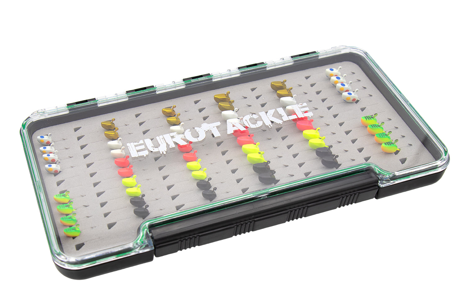 56 Jigs pre-organized in the waterproof Euro-Locker Flat Jig Box.